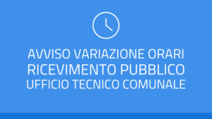 Si informa che a decorrere dal mese di ottobre l’ufficio tecnico comunale osserverà i seguenti orari di apertura al pubblico: